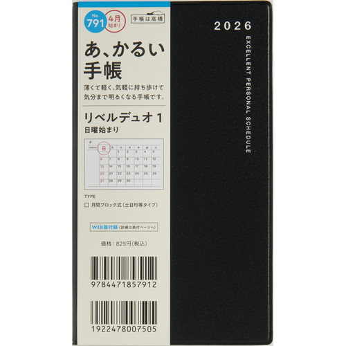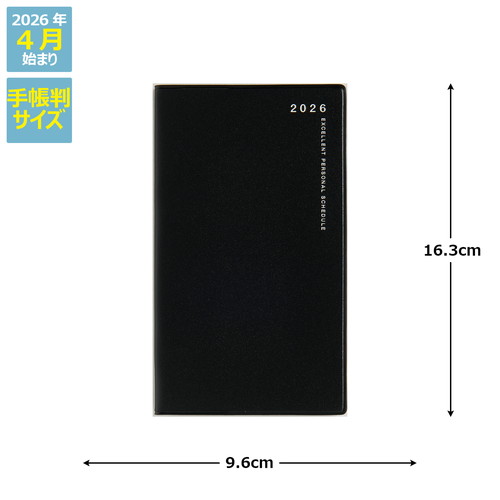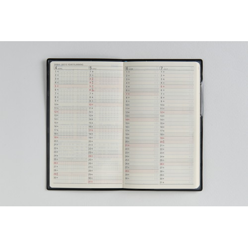 カレンダーと同じ感覚で見やすい日曜始まり。日?土の全ての記入欄が同じサイズの土日均等タイプ。