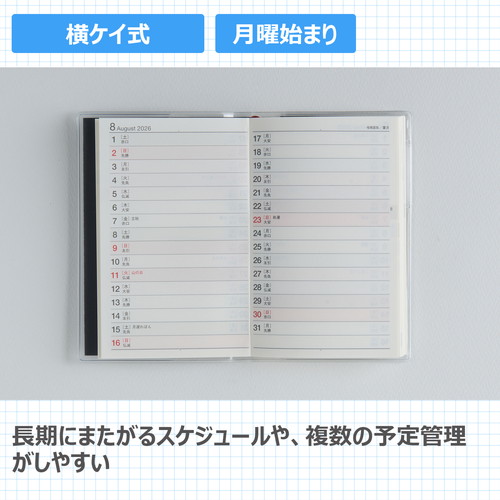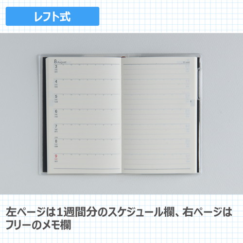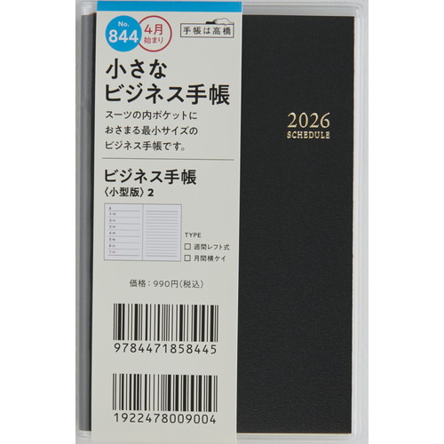 スーツの内ポケットに入れてもかさばらない、高橋書店の手帳の中で最小サイズ。