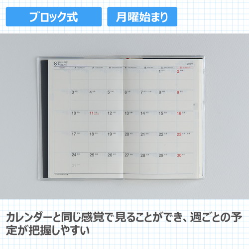 スーツの内ポケットに入れてもかさばらない、高橋書店の手帳の中で最小サイズ。