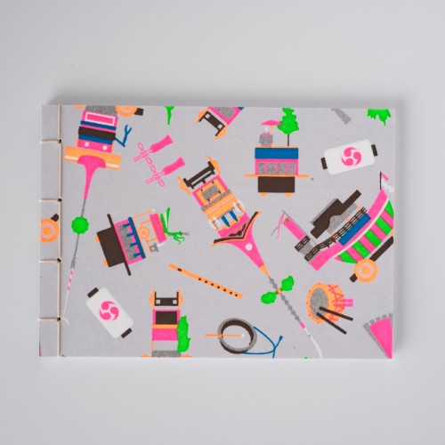 京都の祇園祭をモチーフに、尚雅堂がオリジナルの柄を作成しました。職人による手作業で染められた友禅紙を使用した、和綴メモです。