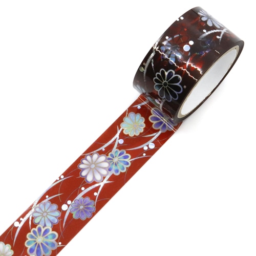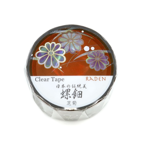 透明素材のテープに伝統的な螺鈿の印刷を行い、模様の繊細さを表現するためホログラム箔をグラデーションに加工にしています。透明テープはどこからでも手で切れるためストレスなくデコレーションが楽しめます。