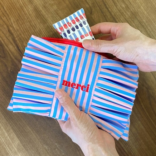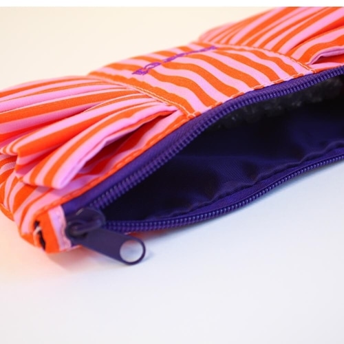 ストライプ柄×フリルが印象的なポーチ