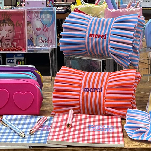#KDT Japan 身辺雑貨 MERCI Stripe コットンポーチ M ブルー&ピンク 120918 #KDT Japan 身辺雑貨 MERCI Stripe コットンポーチ M ブルー&ピンク 120918