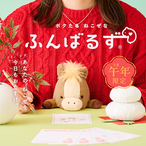 “猫背”なあなたを支えるぬいぐるみ『ふんばるず』の新ラインナップとして、2026年の干支「ウマ」が仲間入り!