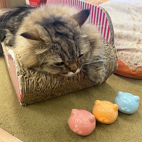 猫が好む「またたび」と「キャットニップ」というハーブの香りをイメージした入浴剤にバスボールが登場。入浴後のほんのりいい香りで、いつもより猫との距離が近づくかも?