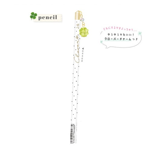 #クーリア  クローバーSTチャーム付き鉛筆(2B・丸)  ホワイト/ドット 04468 #クーリア クローバーSTチャーム付き鉛筆(2B・丸) ホワイト/ドット 04468