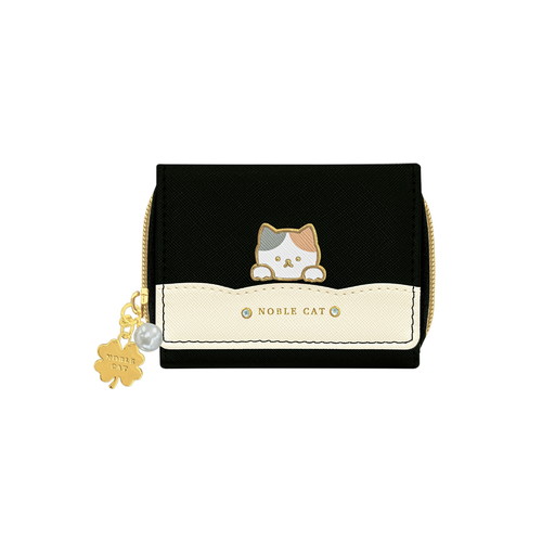 可愛い3つ折りの財布が新発売!トレンドのスカラップ仕様とネコのプレートがとってもCUTEです!クローバープレートのファスナーチャームもおしゃれ!