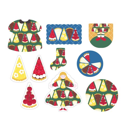 お洋服を着替えるように軽やかに柄をたのしむフレークシールです。厚手の紙素材で透けにくく、ギフトに添えたり、手帳デコにもぴったりです。