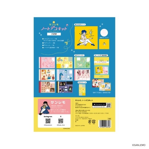 人気クリエイターのイラストがたっぷり!シール、ノート、デコレーションペーパー8枚、冊子の4点セット入った、豪華なノートデコキット。【検索ハッシュタグ】#ノート#ノートデコ#手帳#手帳デコ#クリエイター#デコレーション#サンレモ