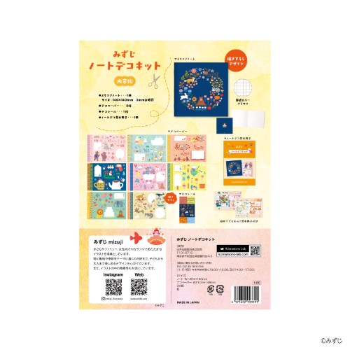 人気クリエイターのイラストがたっぷり!シール、ノート、デコレーションペーパー8枚、冊子の4点セット入った、豪華なノートデコキット。【検索ハッシュタグ】#ノート#ノートデコ#手帳#手帳デコ#クリエイター#デコレーション#みずじ