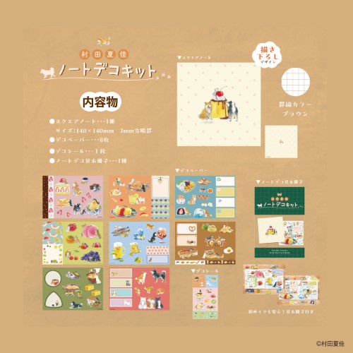 人気クリエイターのイラストがたっぷり!シール、ノート、デコレーションペーパー8枚、冊子の4点セット入った、豪華なノートデコキット。【検索ハッシュタグ】#ノート#ノートデコ#手帳#手帳デコ#クリエイター#デコレーション#村田夏佳