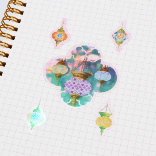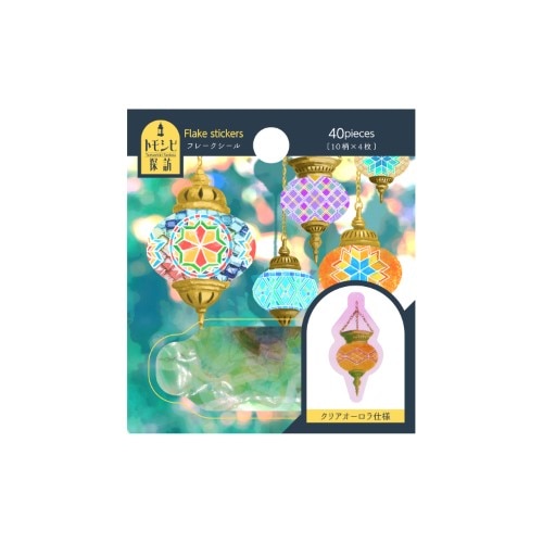 世界の灯(トモシビ)をテーマに豪華で美しいデザインで展開したステーショナリーシリーズ。フレークシールはオーロラ加工でより幻想的なデザインに!