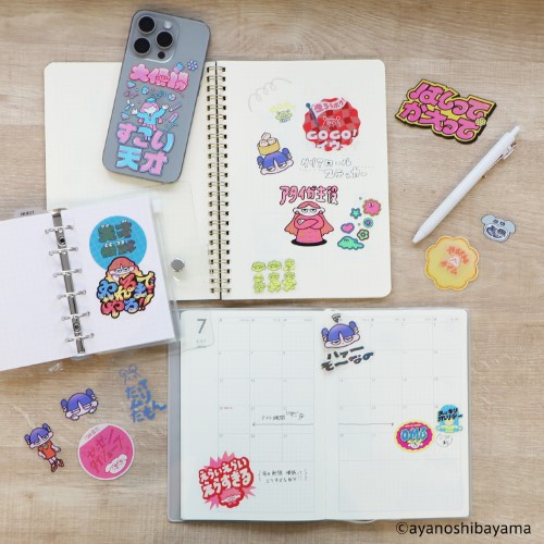 自分で好きなモチーフを好きな形に切り取って貼って使えるクリアロールステッカー。全てのシールにオーロラのキラキラ加工。高精細な印刷でクリエイターのイラストの世界観をクリアに表現しています。