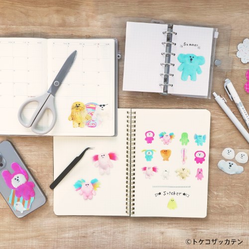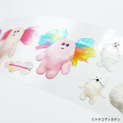 自分で好きなモチーフを好きな形に切り取って貼って使えるクリアロールステッカー。全てのシールにオーロラのキラキラ加工。高精細な印刷でクリエイターのイラストの世界観をクリアに表現しています。