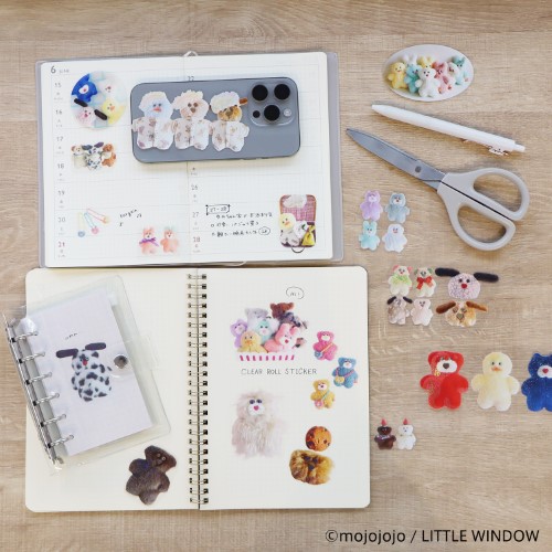 自分で好きなモチーフを好きな形に切り取って貼って使えるクリアロールステッカー。全てのシールにオーロラのキラキラ加工。高精細な印刷でクリエイターのイラストの世界観をクリアに表現しています。