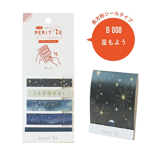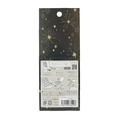 ●カラカラペリッテに持ち歩きに便利なシートタイプが仲間入り●端をつまんでめくるだけで、簡単に台紙から剥がせる●剥がしやすく、貼りやすい●折りたたんで持ち歩きもできる●1シートごとにミシン目で切り離せるからお裾分けも簡単●摘む部分に剥離紙が残るから指先もベタつかない●そのまま剥離紙を残せばふせんやインデックスのような使い方もできる●鉛筆でも水性ペンでも書き込みができる●カラカラペリッテ(ロールシール)の姉妹品【検索ハッシュタグ】#エポックケミカル#シール#付箋#マスキングテープ#マステ#インデックス#収納#文具女子博#シート#星もよう