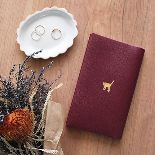 ワンポイントモチーフを箔押しした新書サイズのブックカバー。
