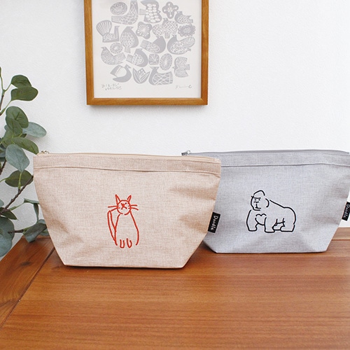 落書きのようなかわいい動物たちの刺繍がポイントの保冷ランチポーチ。