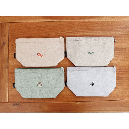 落書きのようなかわいい動物たちの刺繍がポイントの保冷ランチポーチ。