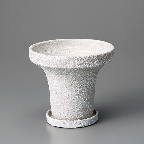 荒土のような粒状のテクスチャーを表面に施した、アンティーク調の植木鉢。