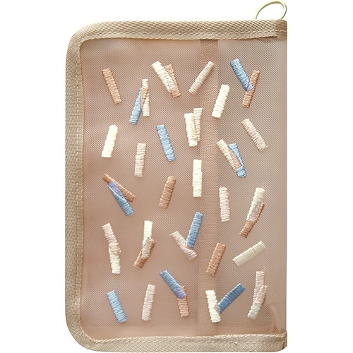 透け感のあるメッシュ生地に刺繍をあしらった文庫サイズのブックカバー。