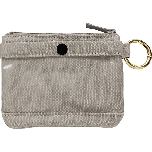 硬貨、二つ折り紙幣、カードが入るサイズのミニポーチ。前面は硬貨や鍵が入る浅型ポケット、背面はICカードが入るクリア素材のポケットになっています。カラビナをベルトループに引っ掛けて手ぶらでお出かけしたり、カバンの持ち手に引っ掛ければ迷子になるのを防ぎます。【検索ハッシュタグ】#ポーチ#ミニ#カード#財布#ウォレット#硬貨