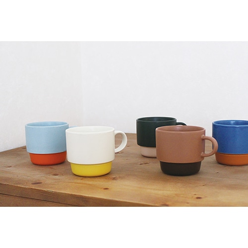 やさしくポップな色合いのツートーンマグ。