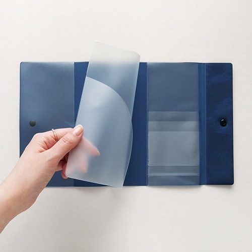ノートや手帳など、好きな組み合わせの2冊を入れられる B6 サイズ対応のツインカバー。真ん中の仕切りに表紙を挟んで収納できます。名刺や付箋が入るポケット付きで、ノートをデコレーションするアイテムの収納にも便利。お気に入りの2冊を気軽に持ち歩けるので、仕事や日々の生活の記録を残すのにぴったりです。【検索ハッシュタグ】#ノート#カバー#ツイン#名刺#付箋#B6#手帳