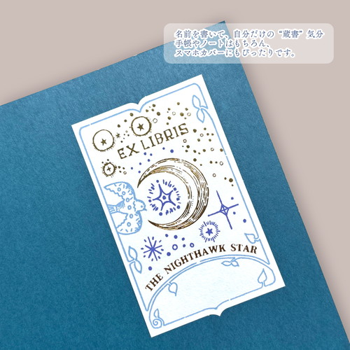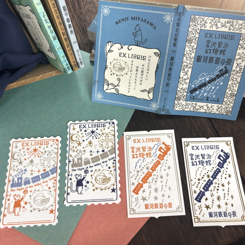 大切な本の持ち主を表す“蔵書票”。そんな小さな文化のかたちを、活版印刷と箔押しでシールに仕立てました。活版印刷ならではのレトロな風合いに、宮沢賢治の幻想的な世界を映したクラシカルなデザインを合わせ、箔のきらめきが静かにアクセントを添えています。書籍を思わせる台紙に収め、まるで小さな一冊の本を手に取るような仕上がりです。【検索ハッシュタグ】#手帳#ノート#デコレーション#レトロ#文学#ギフト#猫#動物#文具女子