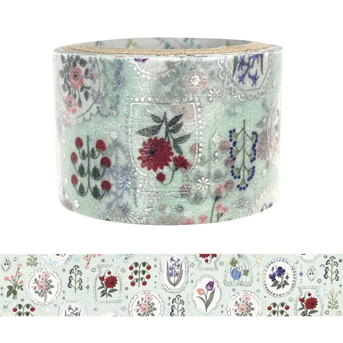 繊細な絵柄にホログラム箔を添えたワイド幅(27mm幅)の箔押しマスキングテープ。絵柄に合わせてゴールドとシルバー、2種の箔を使用されており、ワイド幅ならではの華やかさが、イラストレーターShinziKatohが描いた世界観を豊かに広げます。【検索ハッシュタグ】#マステ#幅広#フラワー#花柄#ボタニカル#大人向け#箔押し#キラキラ#グリーン#washitape#デコレーション#コラージュ#手帳#ノート#可愛い#動物#文学#文具女子#剥がせる#