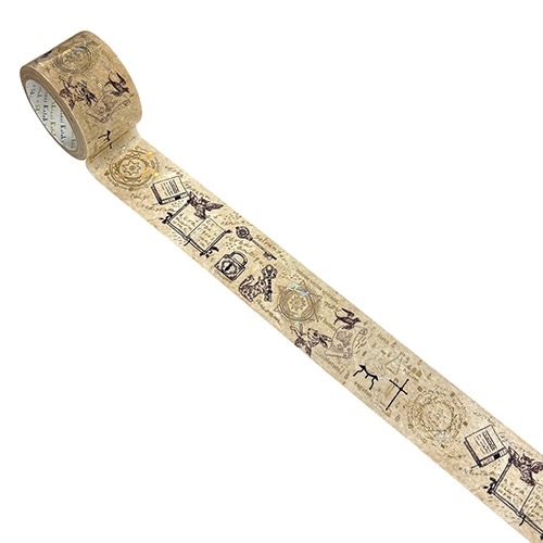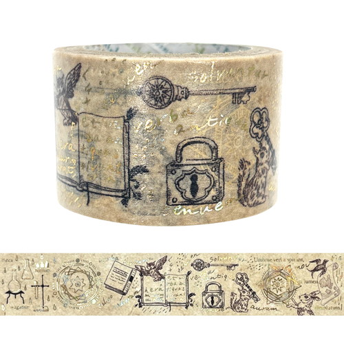 繊細な絵柄にホログラム箔を添えたワイド幅(27mm幅)の箔押しマスキングテープ。絵柄に合わせてゴールドとシルバー、2種の箔を使用されており、ワイド幅ならではの華やかさが、イラストレーターShinziKatohが描いた世界観を豊かに広げます。【検索ハッシュタグ】#マステ#幅広#魔法#鍵#大人向け#箔押し#キラキラ#ブラウン#レトロ#フクロウ#washitape#デコレーション#コラージュ#手帳#ノート#可愛い#動物#文学#文具女子#剥がせる#