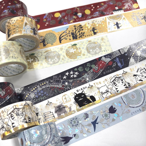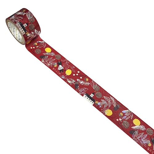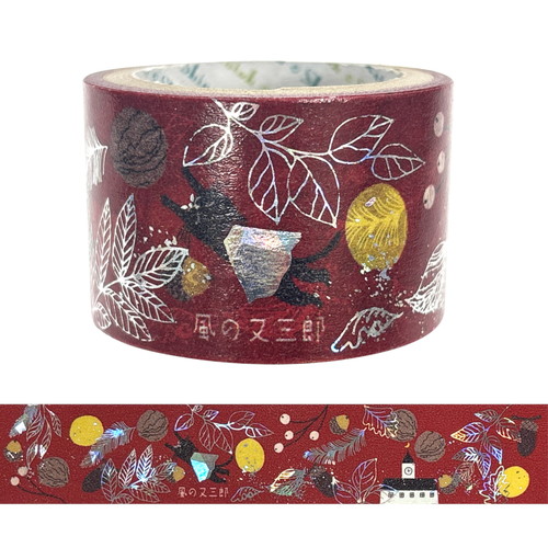 繊細な絵柄にホログラム箔を添えたワイド幅(27mm幅)の箔押しマスキングテープ。絵柄に合わせてゴールドとシルバー、2種の箔を使用されており、ワイド幅ならではの華やかさが、イラストレーターShinziKatohが描いた世界観を豊かに広げます。【検索ハッシュタグ】#マステ#幅広#宮沢賢治#風の又三郎#赤#大人向け#箔押し#キラキラ#washitape#デコレーション#コラージュ#手帳#ノート#可愛い#動物#文学#文具女子#剥がせる#
