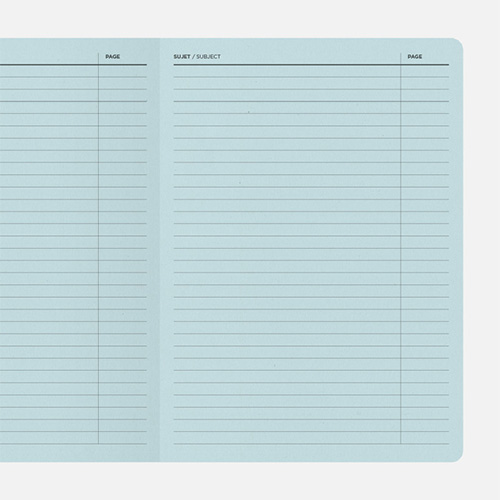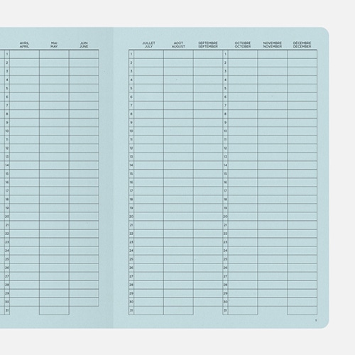 2012年にパリを拠点に活動を開始したパピエ ティグル。キーコンセプトは”イノベーション”と”クリエーション”。表面的なデザインだけでなく、グラフィック・遊び心・実用性といった要素を大切にしています。 ADMIN(フランス語で”管理”の意味)のシリーズはカラーごとに中のレイアウトが異なり、横罫/ドット方眼/無地の3種類。ノート冒頭には項目を管理できるページと1年間の簡易カレンダーつき。 表紙にはもちろん、日付記入欄やジャンル分けなど、一目でノートの内容が把握できる津風が満載。