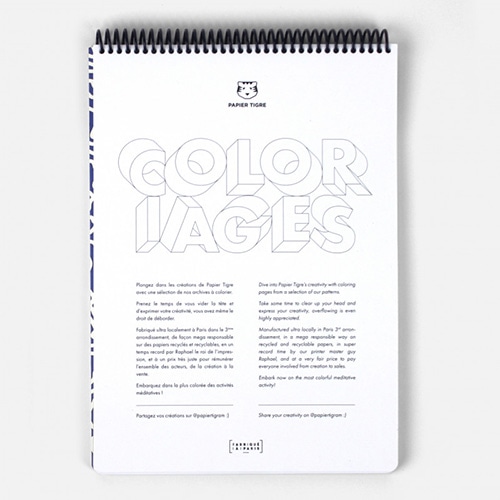2012年にパリを拠点に活動を開始したパピエ ティグル。キーコンセプトは”イノベーション”と”クリエーション”。表面的なデザインだけでなく、グラフィック・遊び心・実用性といった要素を大切にしています。 パピエ ティグルのクリエイティブなエッセンスが垣間見れる塗り絵ブック。過去これまで作ってきたパターンにあなたの好きなカラーリングで塗り絵を楽しめます。ページ下部には柄の名前と製作年が書かれています。 お家時間も楽しくする、パピエ ティグルならではの遊び心あるアイテムのひとつです。