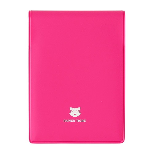 耐久性に優れたPVC素材のカバーに、パピエ ティグルの人気パターンをシルク印刷。セットのメモは、今夏発売の「ブロックロディアカラーズ No.11」。 カバーとメモのカラーコンビネーションを楽しめる、遊び心あふれるコレクションです。