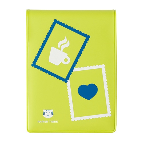 耐久性に優れたPVC素材のカバーに、パピエ ティグルの人気パターンをシルク印刷。セットのメモは、今夏発売の「ブロックロディアカラーズ No.11」。 カバーとメモのカラーコンビネーションを楽しめる、遊び心あふれるコレクションです。
