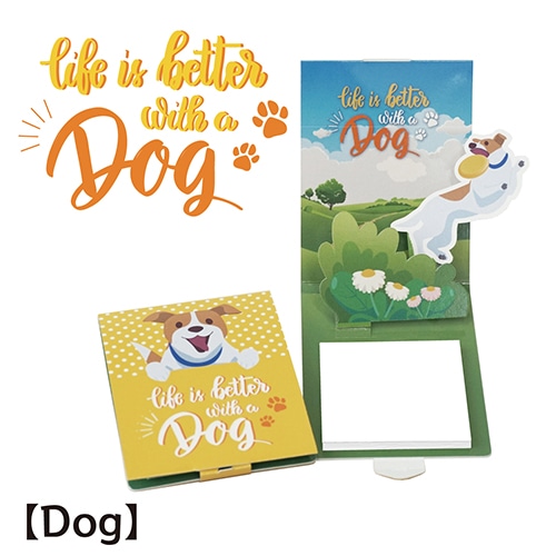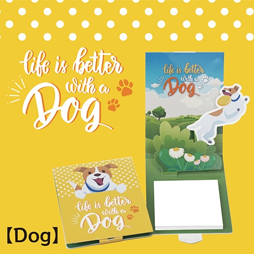 開くと"いぬ"が飛び出す飛び出すしかけつきふせん。 付箋は使いやすい無地タイプ。仕事場でも日常でも使いやすいデザインで、使わない時も飾って楽しめるかわいさと遊び心が詰まった商品です。
