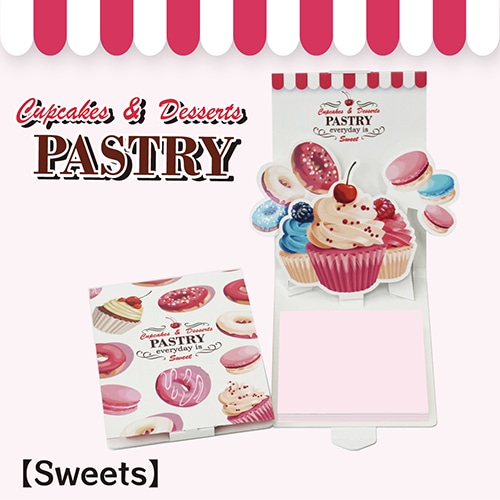 開くと"スイーツ"が飛び出す飛び出すしかけつきふせん。 付箋は使いやすい無地タイプ。仕事場でも日常でも使いやすいデザインで、使わない時も飾って楽しめるかわいさと遊び心が詰まった商品です。