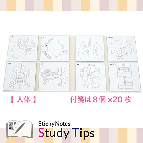 進学塾との共同開発!現役医師監修!しっかり学べる学習付箋 勉強するときに面倒な図の書き写し…。そんな時間を解消するために開発された人体付箋です。