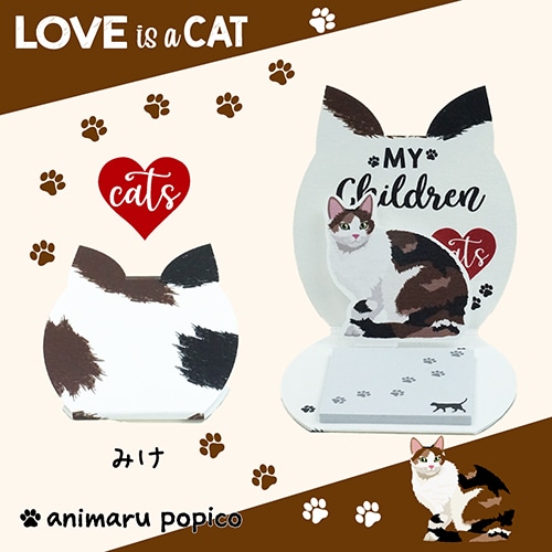 "みけ"ねこの飛び出すしかけがついたふせん。 本体が猫の耳がついた頭の形になっており、さわり心地が猫の毛並みのような猫好きの心をくすぐる商品です。