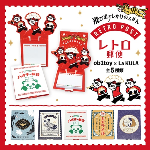 開くと人気イラストレーター・オビワンさんの"ヤムハオ"デザインが立体に飛び出すしかけふせん。 レトロな世界観のデザインで、使わない時も飾って楽しめるかわいさと遊び心が詰まった商品です。
