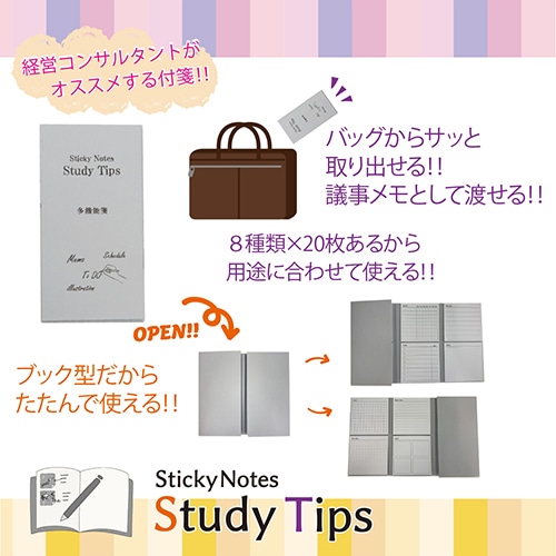 大手コンサルファームの経営コンサルタント監修! 用途に合わせてスマートに使えるノートテンプレートの付箋です。