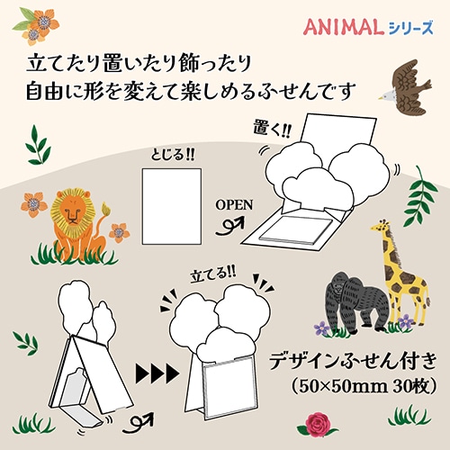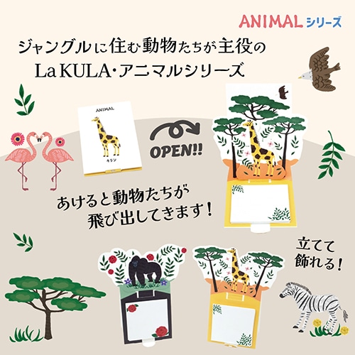 開くと"フラミンゴ"がひょっこり飛び出す、遊び心たっぷりの仕掛け付き付箋です。 付箋部分は50mm角の花や植物をモチーフにしたやさしいデザインで、オフィスや学校など日常のシーンにも自然になじみます。 メモやメッセージを書くだけでなく、使わない時も机の上に飾って楽しめるのが魅力。ちょこんと立つフラミンゴの姿は、見るたびにほっと心を和ませてくれます。自分用にはもちろん、ちょっとしたギフトにもおすすめのアイテムです。【検索ハッシュタグ】#森の動物付箋#La KULA#ANIMAL#ラクラ#動物#動物グッズ#飛び出す#とびだす#立体ふせん#かわいいふせん#ポップアップふせん#メモ帳#文房具#デスク雑貨#ギフト#子ども向け#学生向け#オフィス#プレゼント#動物モチーフ#森の動物#遊び心#癒し#机上雑貨#学習用#文具#キリン#ライオン#ゾウ#シマウマ#ゴリラ#フラミンゴ#可愛い#かわいい#おしゃれ#おもしろ#To Do#付箋#ふせん#アニマル#しきさいさい#紙季彩々#動物園