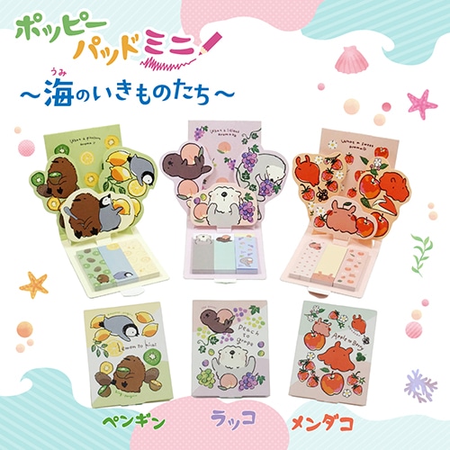 開けるとペンギンとキウイがポップアップする、飛び出すしかけつきふせんの「海のいきもの&フルーツ」シリーズ。 使って可愛い、飾って癒される♪ほっこりやわらかいイラストが魅力の"チナップ"さんのデザイン