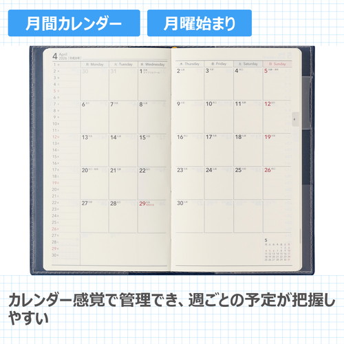 NOLTY(ノルティ)のシンプルウィークリー手帳。仕事にもプライベートにも使いやすい人気のスケジュール帳です。 【月間ページ】見開き1ヶ月のベーシックなブロックタイプ(月曜始まり)。 【週間ページ】見開き1週間のレフトタイプ(月曜始まり)。予定とメモにバランスよく使えるので、初心者にもおすすめのレイアウトです。 モデルチェンジ:・裏表紙のNOLTYのロゴマークを廃止し、より多くの人が使いやすいシンプルなデザインに変更しました。