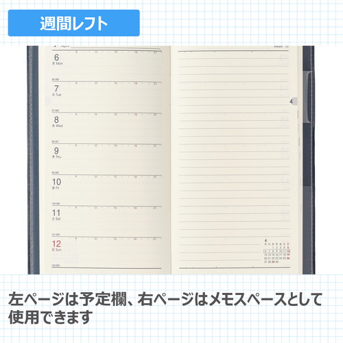 NOLTY(ノルティ)の縦長ビジネス手帳。 【月間ページ】見開き1ヶ月のベーシックなブロックタイプ(月曜始まり)。 【週間ページ】見開き1週間のレフトタイプ(月曜始まり)。予定とメモにバランスよく使えるので、初心者にもおすすめのレイアウトです。 モデルチェンジ:・裏表紙のNOLTYのロゴマークを廃止し、より多くの人が使いやすいシンプルなデザインに変更しました。 ・文字が見やすくなりました