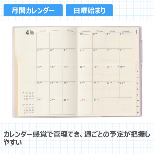 #日本能率協会 NOLTY 手帳 2026年 B6 マンスリー ラベンダー 2637 (2025年 11月始まり)