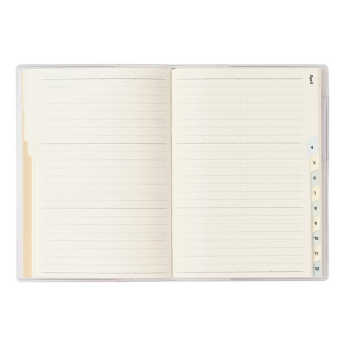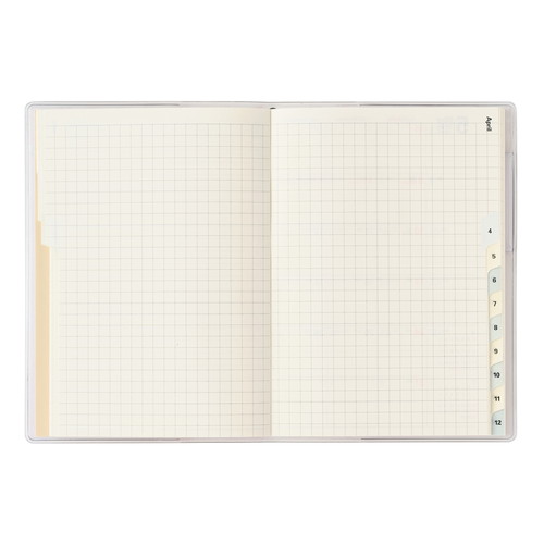 PAGEM by NOLTY(ペイジェム バイノルティ)のマンスリー手帳、A6-iアイダにメモシリーズは、各月のアイダにメモページと方眼ページが2ページずつ付いているのが特長です。 【月間ページ】持ち運びにも便利なA6サイズ(日曜始まり)。すっきりとしたデザインのレイアウトで、ストレスなく書き込めます。1日のマスを上下に二分割しているので「午前/午後」「自分/家族」など予定を整理して記入できます。 ※表紙を変更しました
