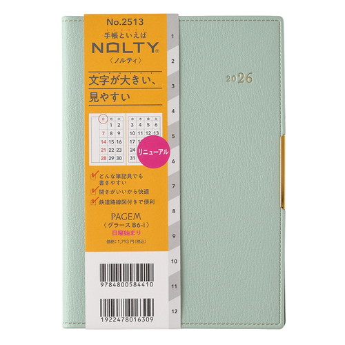 #日本能率協会 ペイジェム 手帳 2026年 B6 マンスリー グラース ミントグリーン 2513 (2025年 12月始まり)