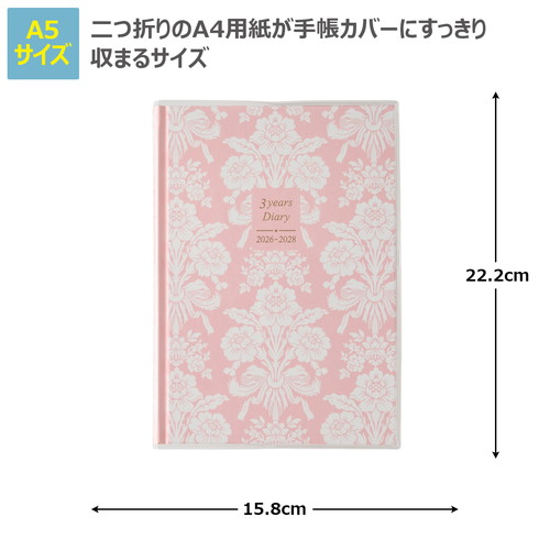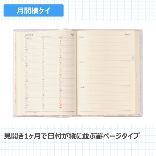 花柄で人気のイギリスのブランドLAURA ASHLEYのダイアリーシリーズ 【月間ページ】見開き1ヵ月で日付が縦に並ぶ罫ページタイプ。長期の予定を書くのに便利です。 【日記欄】3年分の同じ日の記録を一覧できる3年連用タイプ。日記や育児日記などにおすすめのレイアウトです。 思い出の写真など入れておくのに便利なポケットアルバムが付いています。 ※表紙を変更しました